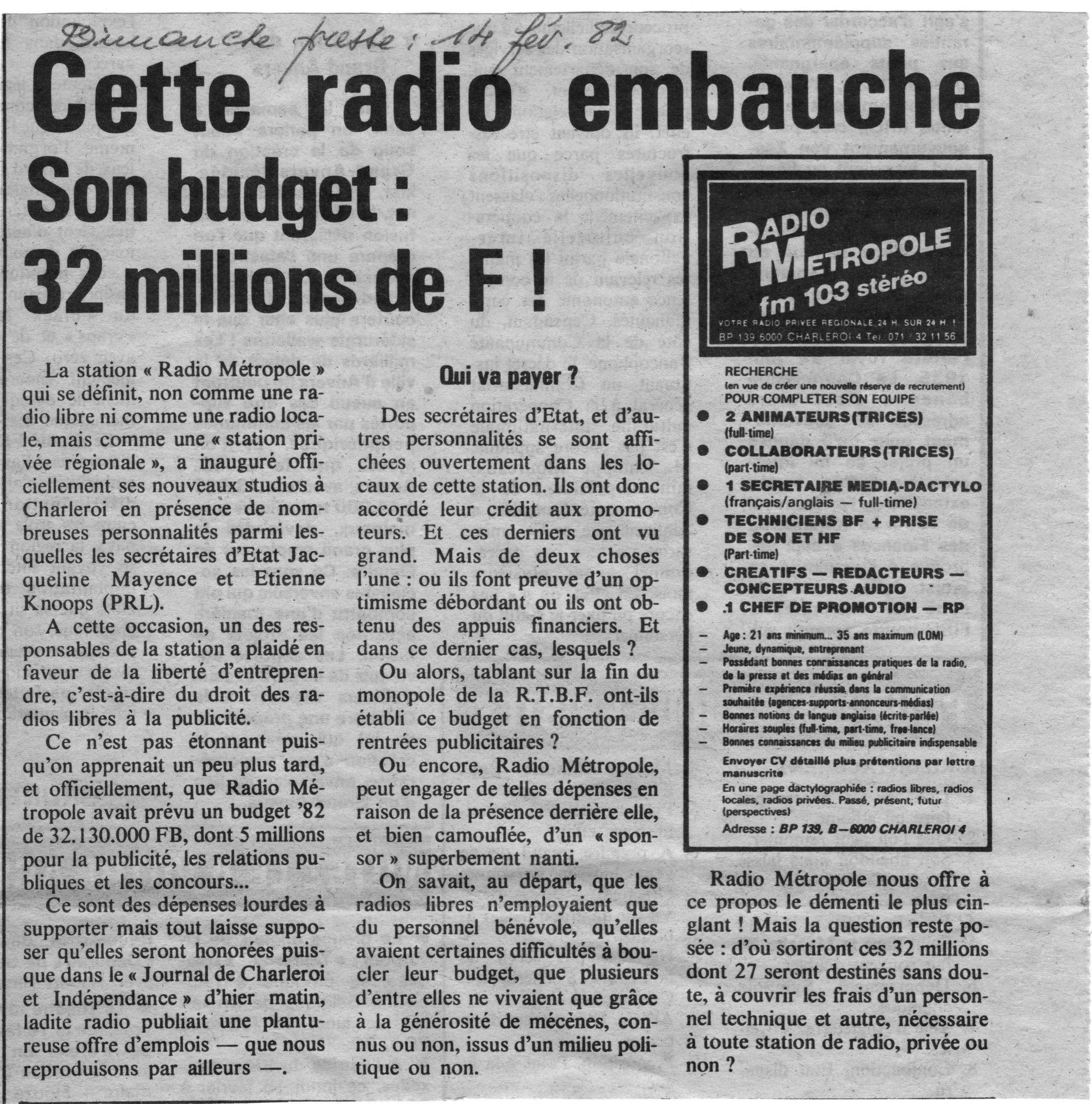 Contexte : Le 16 juin 1981 les radios libres devaient toutes baisser leur puissance à 100 watts. Une mesure rejetée par les stations à vocation commerciale (comme Radio Métropole) qui craignaient que cela les empêche de se développer publicitairement (une couverture limitée signifiant moins d’auditeurs pour les publicités).